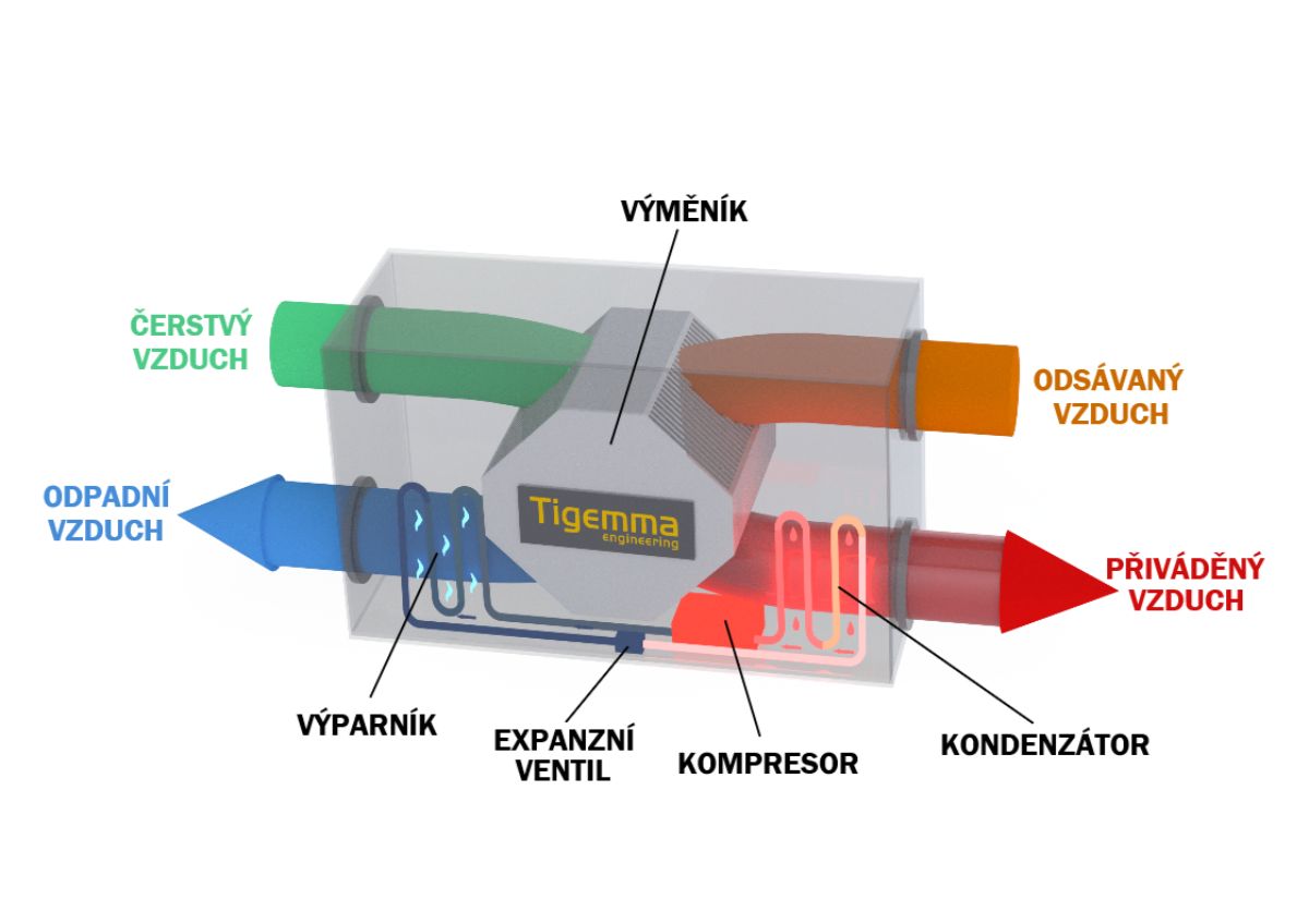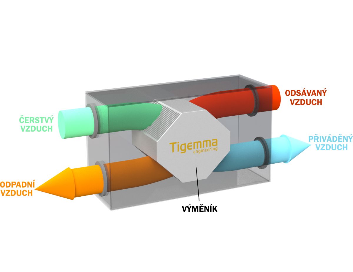 Rekuperace tepla typu vzduch – vzduch funguje na principu nucené výměny vzduchu. Nedílnou součástí rekuperační jednotky vzduch – vzduch je konvekční výměník sloužící k výměně tepla mezi větraným a čerstvým vzduchem.