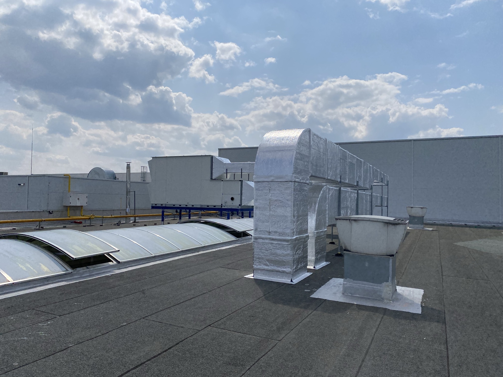 V roce 2021 jsme do společnosti dodali vzduchotechnický systém sloužící k větrání prostor tvářecích pecí výrobních linek. Celý systém nuceného větrání slouží k provětrání znečištěného vzduchu novým čerstvým přívodním vzduchem přímo na pracoviště navěšování a svěšování plastových dílů dopravníkového systému termo tvarovacích pecí. Pracoviště bylo v minulosti bez možnosti jakékoliv ventilace, z toho důvodu zde byl detekován velice často výskyt aerosolů a par vnikajících při procesu termotvarování plastových dílů. K nucenému větrání byly navrženy dvě vzduchotechnické jednotky s rekuperátorem Remak AeroMaster XP 28 o celkovém vzduchotechnickém výkonu 25 000 m3/h. Aby byl zajištěna stálá teplota vzduchu i v zimním období byly vzduchotechnické jednotky osazeny plynovým dohřevem vzduchu. Výměna vzduchu v prostorách linky byla navržená prostřednictvím vzduchotechnických rozvod obsahující sací elementy a prvky pro přívod vzduchu s důrazem na rovnoměrné rozprostření přiváděného vzduchu. Distribuce vzduchu do haly je řešena textilní vyústkou.