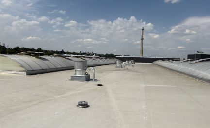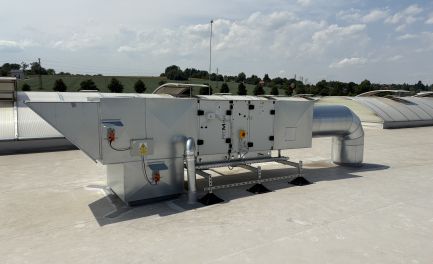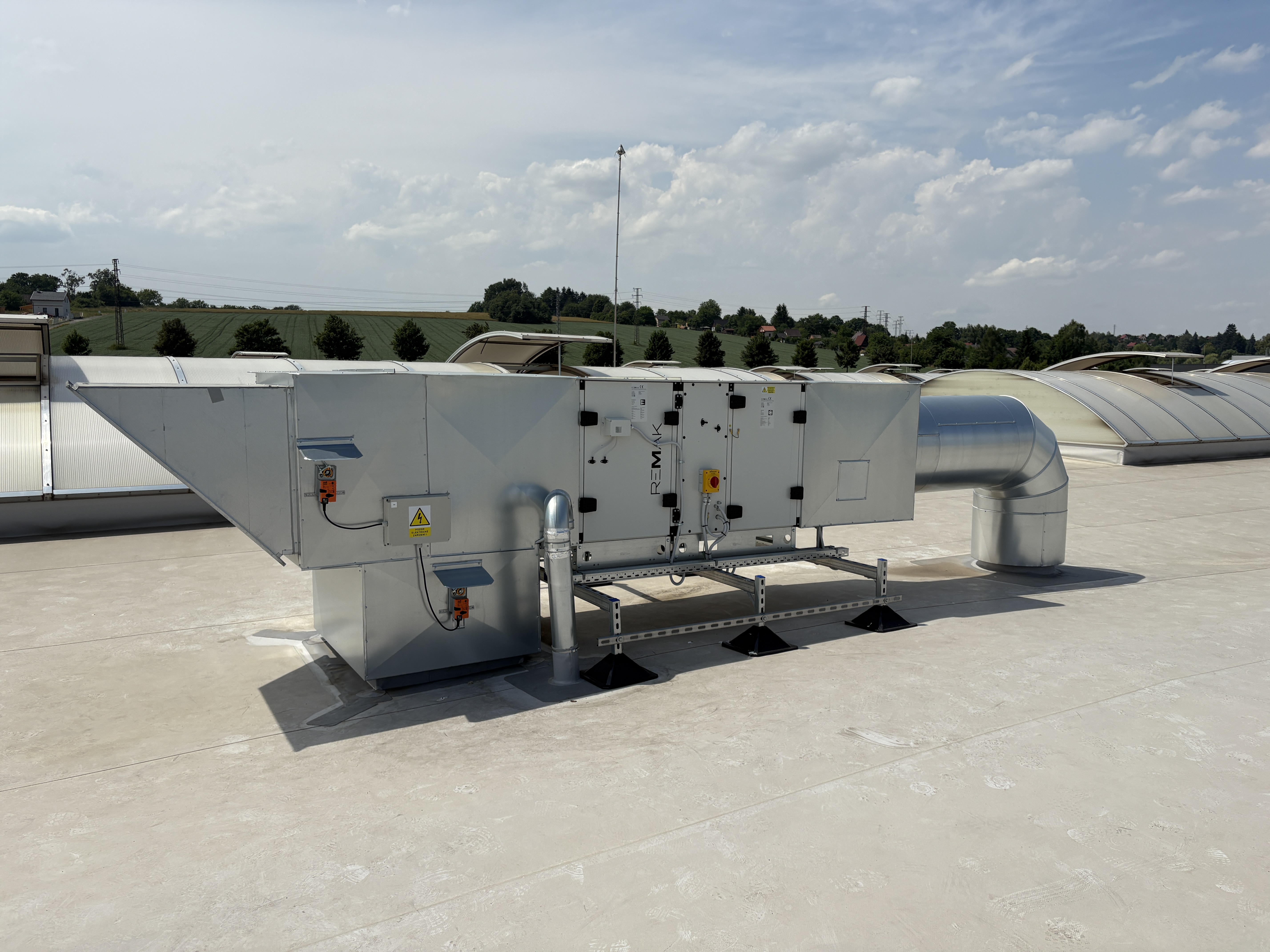 The supply of fresh air is realized through supply air units located on the exterior of the production hall. In winter, the supply air is intelligently mixed with air from the hall interior according to the required temperature in the installation area. This solution significantly reduces the energy consumption of the operation and minimizes heat losses associated with ventilation.