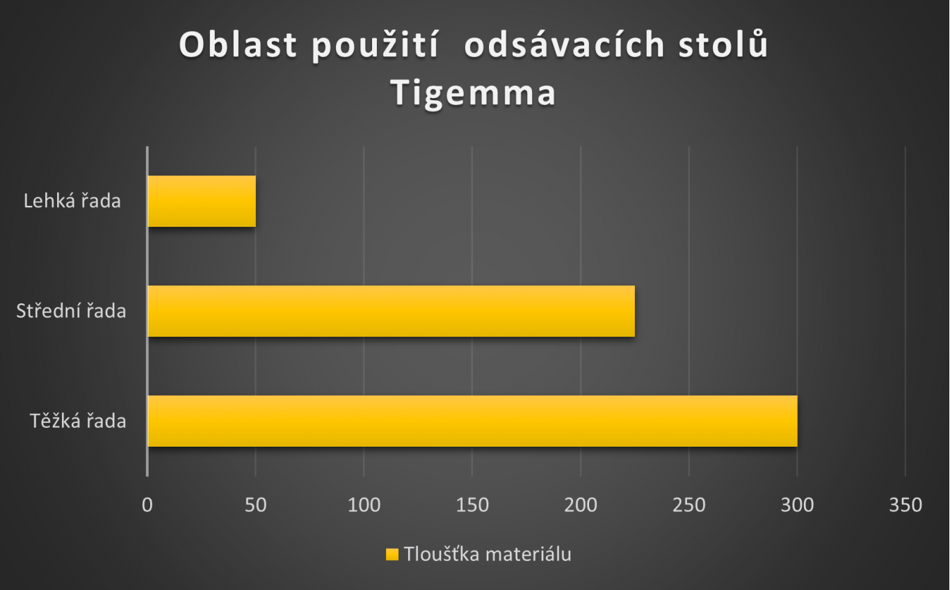 Odsávané stoly Tigemma využívají princip tzv. povrchového odsávání. Prach a dýmy jsou odsávány rovnoměrně na povrchu stolu. To vede k efektivnímu a maximálně spolehlivému výsledku při procesu odsávání.