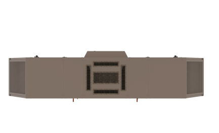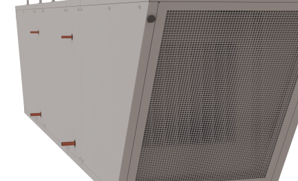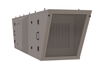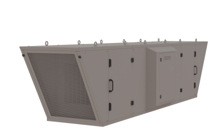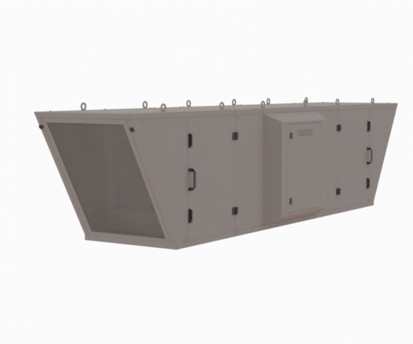 Podstropní vzduchotechnická jednotka je navržena k úpravě vnitřního klima haly, zejména ke snížení teplotní zátěže v letním období. Vzduch vstupuje do jednotky ze stran přes filtrační rouno kategorie G4 tl.40 mm a kapsový filtr kategorie F7 o rozměru 592 x 592 mm. Dále prochází deskovým výměníkem, kde dochází k ochlazení nebo ohřátí a vystupuje středem přes oboustranný radiální ventilátor. Směr distribuce vzduchu je řízen nainstalovanými vzduchotechnickými vyústkami v krytu pod ventilátorem. Podstropní jednotka je navržena na maximální vzduchotechnický výkon 7000 m3/h.
