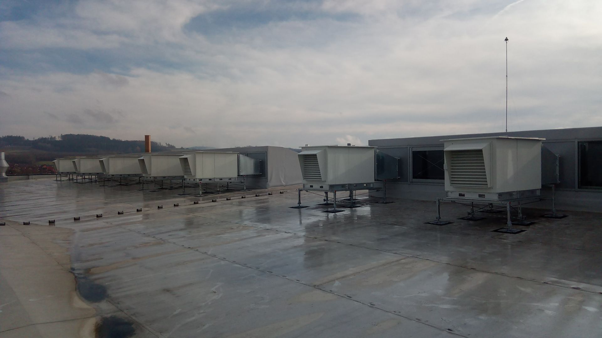 Jednotky byly osazeny v blízkosti světlíků na navržené střešní konstrukce, tak aby se nemuselo zasahovat do střešní krytiny. Řízení distribuce vzduchu všech VZT jednotek probíhá automaticky s hořáky pecí přes velín lakovny. Z důvodu bezpečnosti je rozvaděč VZT jednotek napojen na EPS, který v případě mimořádné situace zastaví dodávky vzduchu do lakovny.