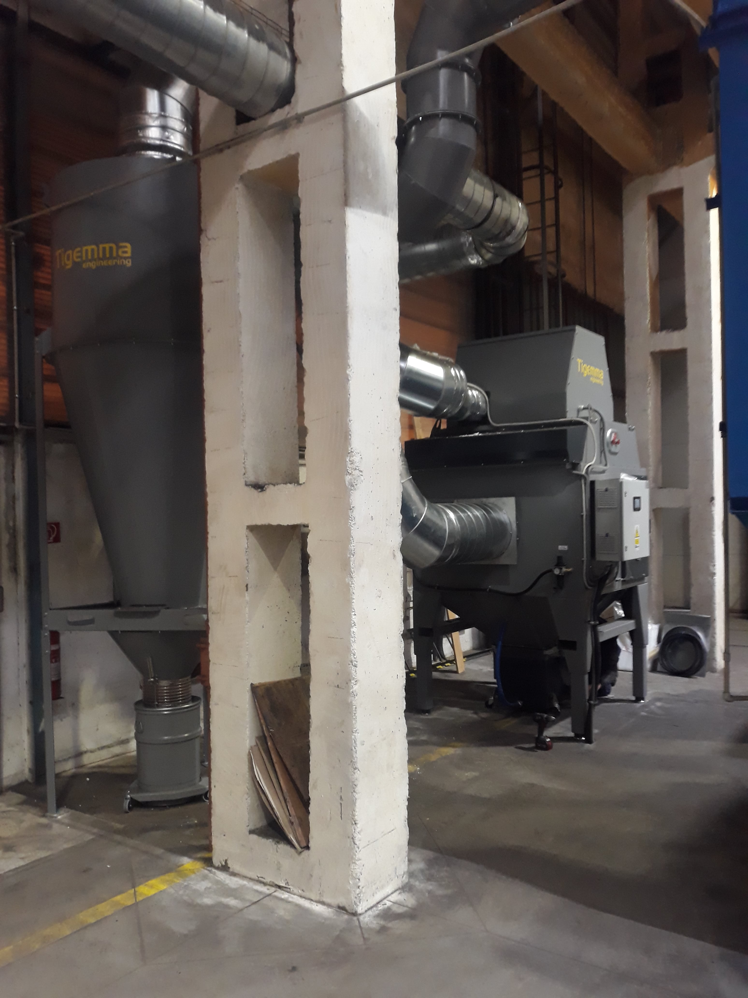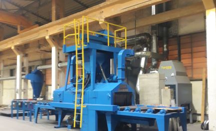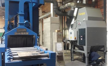 Instalace odsávacího zařízení na zrekonstruovaný průběžný tryskací stroj Škoda byla realizována v únoru 2019. Systém odsávání zahrnoval návrh filtrační jednotky TIG FS a cyklonový odlučovač TC 8400 o celkovém odsávaném objemu 7000 m3/h. Přefiltrovaná vzdušina z tryskacího zařízení je trvale vrácena v množství 25 % zpět do prostor výrobní haly. O přísun čistého vzduchu se stará primární vzduchotechnika nebo přirozené větrání objektu. Ovládání filtrační jednotky je řešeno soft startérem na základě binárního signálu z ovládacího rozvaděče tryskacího stroje Škoda.