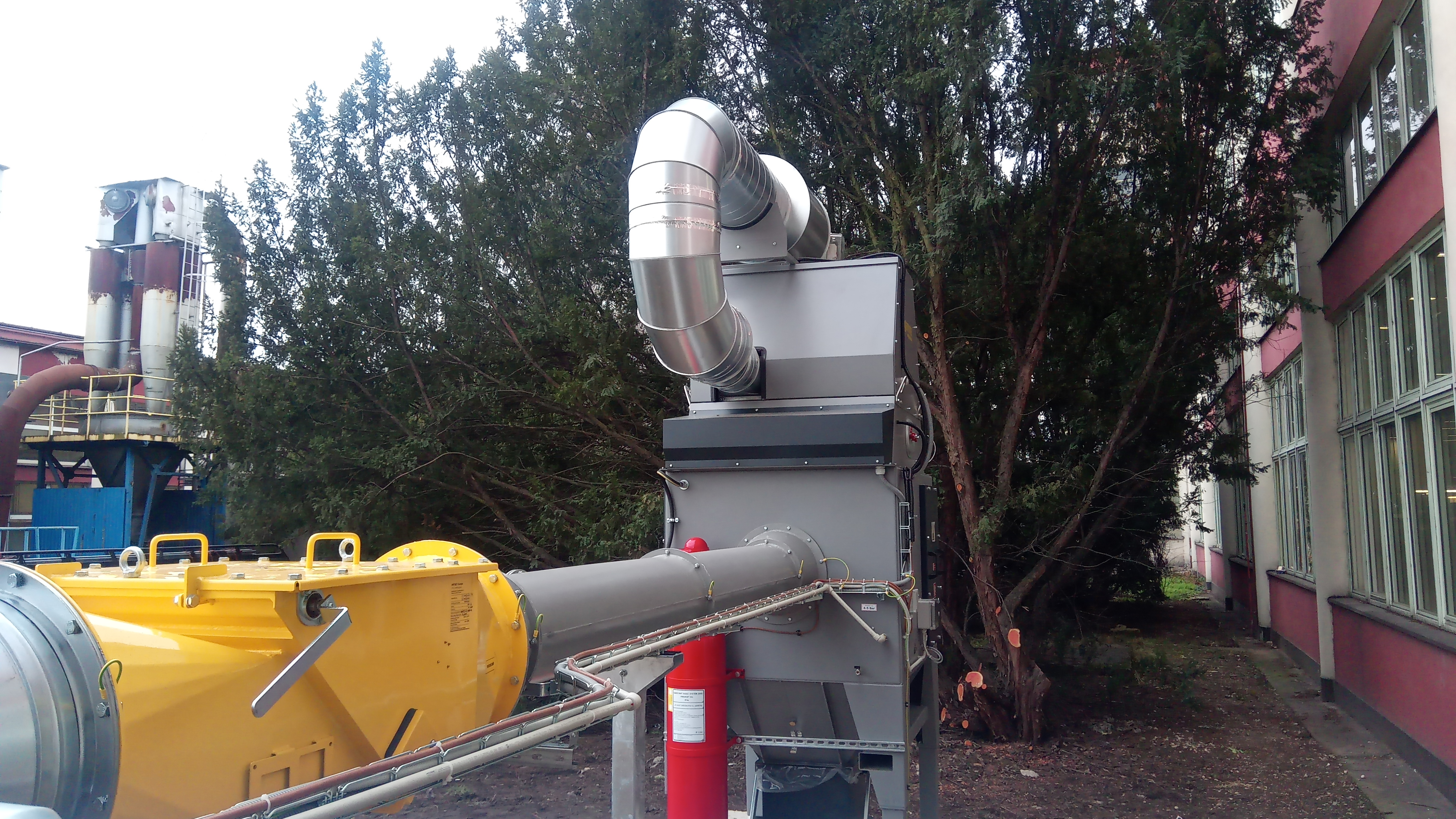 Technologie odsávání broušení gumárenských výrobků je řešena filtrační jednotkou TIG FS 5000/84/EAF v provedení ATEX. Filtrační jednotka byla nainstalována v blízkosti robotického pracoviště mimo interiér výrobní haly. Z důvodu velké pravděpodobnosti zahoření odsávané emise následkem iniciace vyplývající z charakteristiky broušeného materiálu bylo zařízení osazeno autonomním hasebním systémem chránicí filtraci před vznikem a šířením požáru. Jelikož u tohoto typu odsávaného materiálu může vzniknout uvnitř filtru výbušná atmosféra, byly na zařízení a sací potrubí navrženy proti výbuchové ochranné bezpečnostní prvky. Celá realizace byla řešena v lednu 2020. Jak realizace dopadla se můžete podívat na přiložených fotografiích.